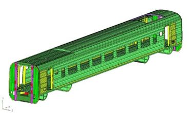 為滿足車輛運營時的節能要求,需充分考慮車體結構的輕量化,這就要求在滿足強度等指標的前提下,對車體各部件進行優化設計。本文論述了對該項目車體結構各部件所作的優化設計,并采用有限元分析驗證了車體結構的強度、剛度、穩定性、疲勞性能及耐碰撞性能,為后續項目的類似車體結構設計提供了參考。